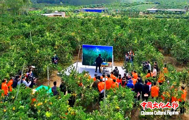 周昌新在享誉海内外的龙盛红橙园直播现场创作廉江红橙