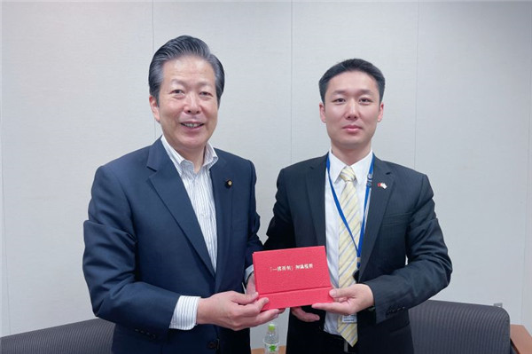 會談後,山口那津男向呂英傑等人贈送了禮物,一件富士山圖案的精美漆盤擺件。