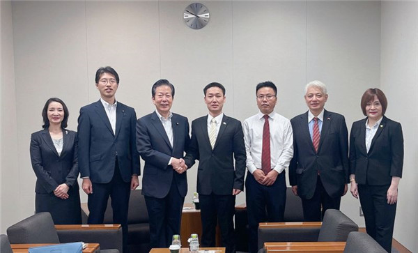 香港新聞社(記者 諸葛順天)7月5日東京電 5日上午,香港新聞社社長呂英傑率香港新聞社日本分社社長吳曉樂、日本分社總編輯蔣豐等人,應約赴日本眾議院,對執政黨領袖、公明黨黨首山口那津男進行拜訪。在眾議院會客廳,山口那津男熱情接待了呂英傑一行,該黨黨報記者進行現場記錄。