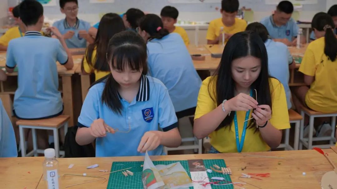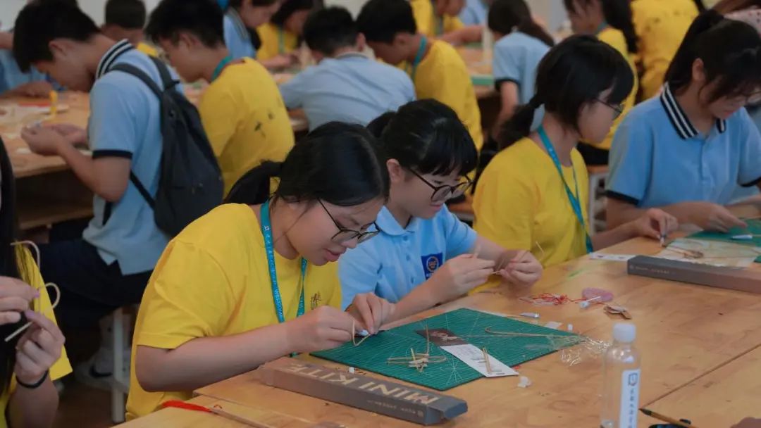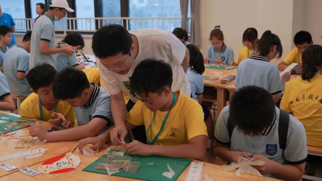 非遗纸鸢——两千多年的春风因它美出天际。今天,传统纸鸢已走出国门,作为特色文化国礼相赠。在纸鸢制作课程中,郑林明老师为营员们介绍了纸鸢图样的寓意、中国风筝的各大流派、历史、以及结构原理。认真听完后,在老师的指导和伙伴的协助下,营员们动手制作“各色”纸鸢,制作骨架、剪取布面、胶水黏贴,有条不紊地进行,亲历“扎、糊、绘、放”等过程,手拿一个个精致可爱的纸鸢,成就感十足。