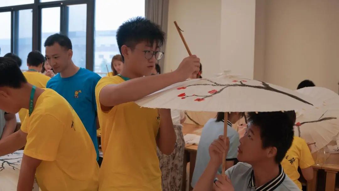 在老师的讲解和示范下,营员们和他们的小伙伴们开启水与墨的创作,一起交流、共同协作,雪白的纸伞在孩子们的手中变得不再单调,他们将国画与纸伞相结合,绘制出一幅幅美丽的传统纸伞画。
