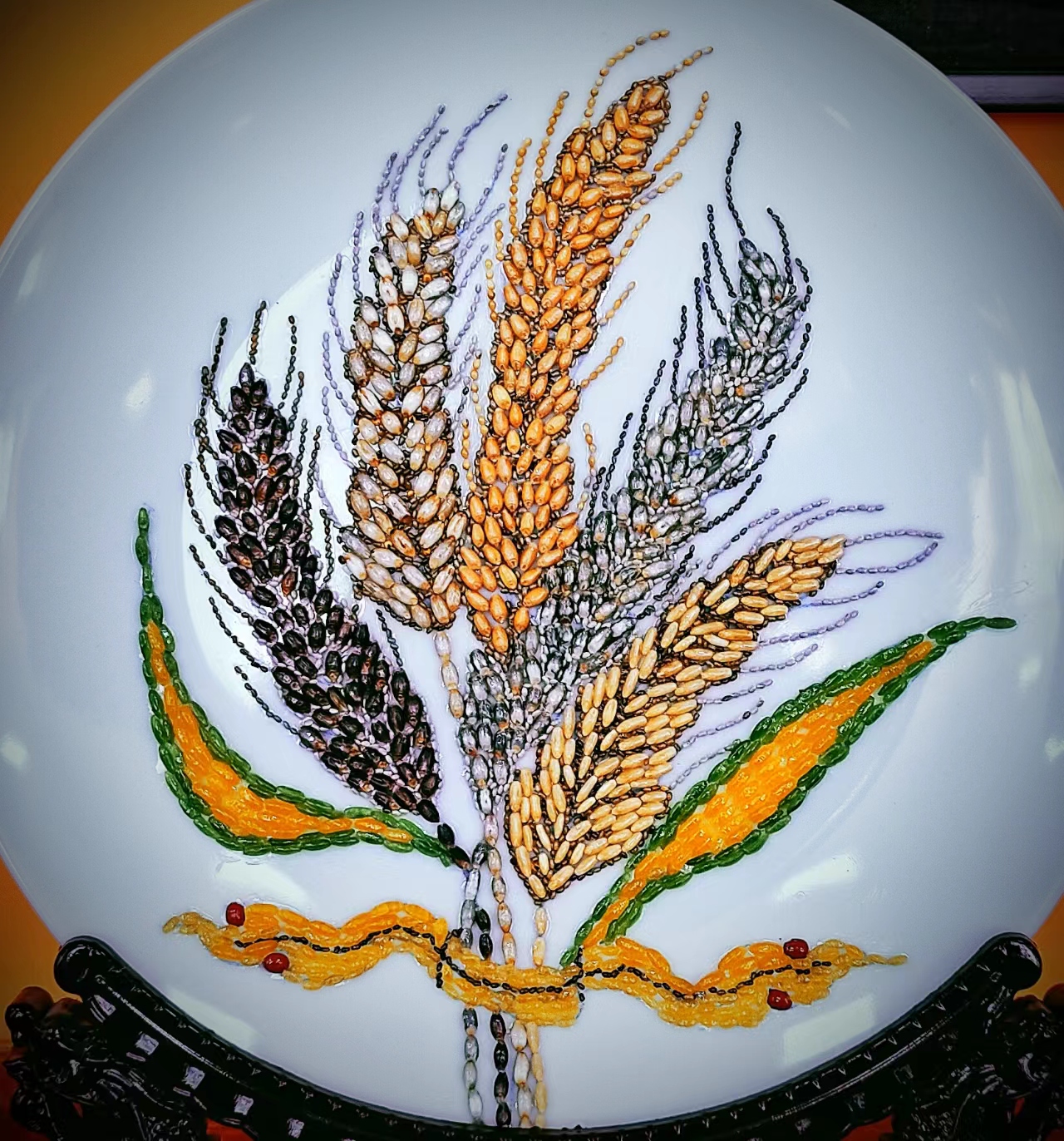 尖扎县五谷画最初由当地藏族人祈求五谷丰收的民间供品演变而来,以稻、豆、青稞、小麦、油菜籽等农作物为原料,经过精挑细选、排列组合,制成精美图案。