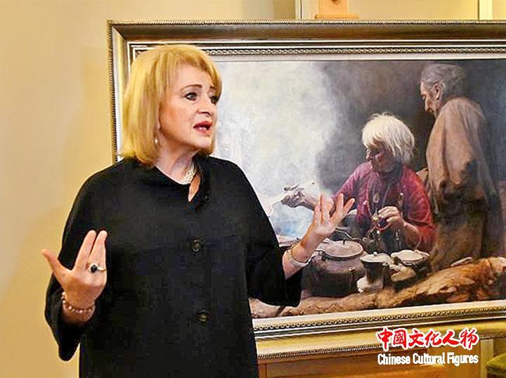 国家博物馆馆长阿拉·玛尼洛娃介绍韩玉臣在俄博举办展览的盛况,高度评价韩玉臣的艺术成就