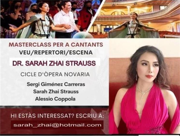 巴塞罗那,10月7日 - 在这个金秋的夜晚,一场别开生面的声乐大师课在西班牙巴塞罗那的El Forn de les Arts艺术之家举办。这场大师课的主角是来自中国的女高音歌唱家翟鹏博士(Dr. Sarah Zhai莎拉·翟),她在德国取得了两个博士学位,并在欧洲歌剧院和世界文化遗产加泰罗尼亚音乐宫展现了她的才华。