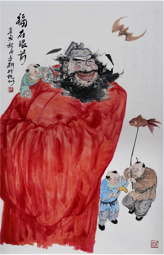 钟馗是一个中国民间令人敬仰的传统人物,他以勇猛无畏惩恶扬善良示人,是正义的偶像,他激励着一代又一代的人们和邪恶作斗争。从焦亚新的钟馗画中我们可以感到正义和幸福离我们并不遥远。在焦亚新笔下,具有驱邪和纳福这两种美好象征意义的艺术作品,已经形成了一种贴近生活的民俗文化。