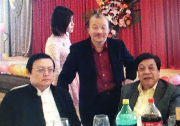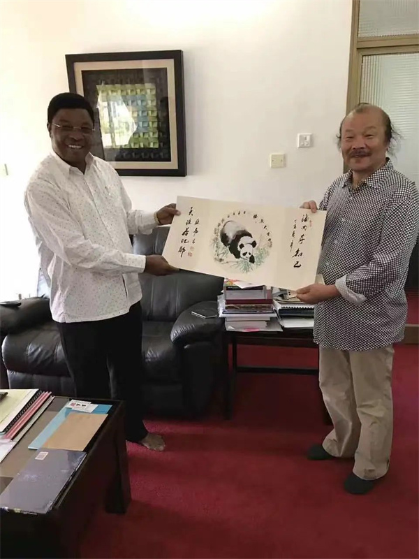 中国书画大师孙磊(右)拜会匈牙利前总理迈杰西(左)。