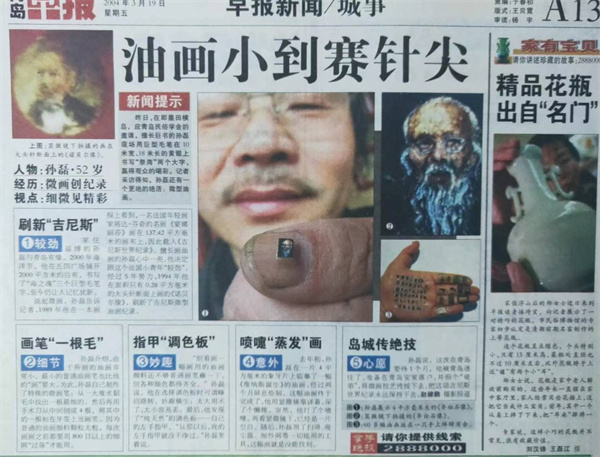 凭借一生对艺术的追求,凭借一股激情与豪气,以超人毅力,用十年时间完成《中华魂万米山水长卷》,又以难度以达极限,在人发断面上绘制的油画《达尔文》,《蒙娜丽莎》,在天然红宝石上绘制的(0.28平方毫米)《毛泽东》,《华盛顿》,《诺贝尔》双双荣获世界基尼斯之最。2008年北京奥运会之随奥运圣火代表团赴希腊雅典,书巨书60米高30米宽《奥运圣火》,在天津书巨书《百年圆梦》。现为北京巨微艺术研究院院长,北京湖社画会副会长,《世界英才》杂志社艺术总监,首都师范大学科德学院,西藏师范学院客座教授。2022年被国家文旅部授予人民艺术家称号。