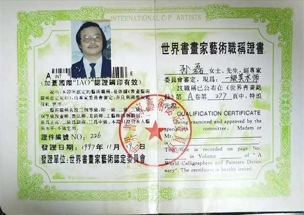 孙磊,字三石,号拜石斋主,竹风居士。山东省淄博市人,现定居北京,职业画家。自幼酷爱书画,受胞兄著名巨书微雕艺术大师孙鑫先生栽培,16岁画毛主席像为生,18岁为淄博市五音剧团美工,师从祝敏,王学春先生,后拜画驴大师马南坡为师。先后在山东艺术学院,中央美术学院深造,师从于希宁,王企华,靳尚谊,钱绍武,周恩聪,朱乃正诸教授指导。在艺术道路上不断求索,立意创新,融中西绘画于一体,集微画长卷于一身,兼长花鸟,人物,书法,巨书,作品多次荣获全国,国际书画艺术大奖,并被联合国教科文组织,人民大会堂,钓鱼台国宾馆,毛主席纪念堂收藏。