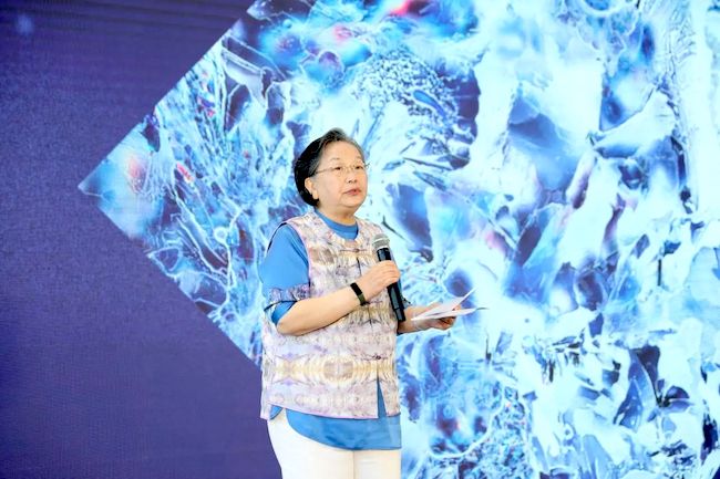 其中部分展品是余慧文用其摄影作品的元素与中国书画跨界合作,与非遗刺绣、宋锦、缂丝等中国传统艺术相融合的作品。余慧文在致辞中表示:希望以此丰富大众的生活,把美带给更多的人。