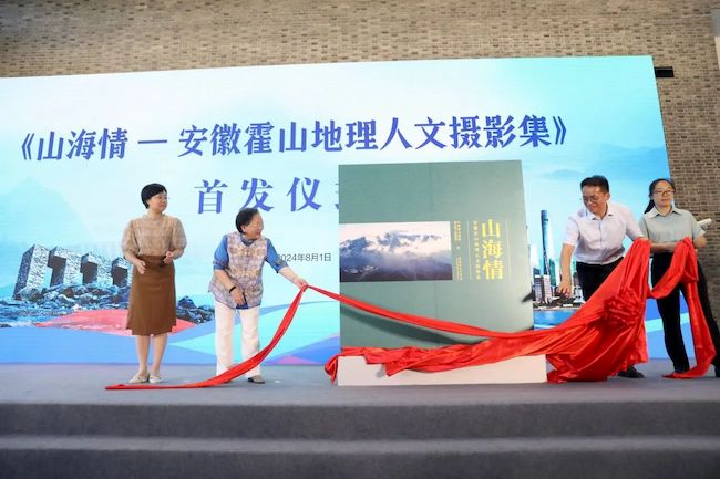 在展厅的重要位置,有两幅命名为“大别山云海”的作品。这是余慧文在安徽霍山拍摄的。过去一年间,余慧文多次到霍山采风,和当地摄影家一起研讨、创作,拍摄四季美景,记录老区发展。当地宣传部门将这些作品精选后集结成册,出版了《山海情——安徽霍山地理人文摄影画册》。画册的首发仪式在开幕式上举行。