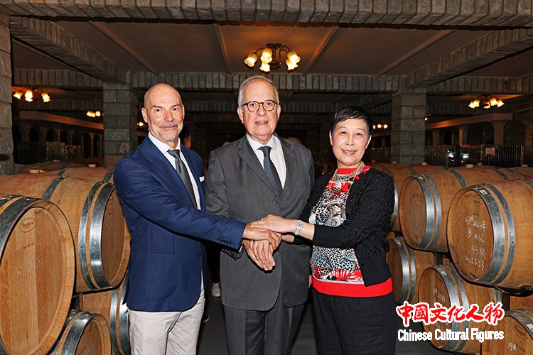 法国前驻华大使、欧中联合商会荣誉主席顾山,欧中联合商会副主席、香港总会主席张青在酒庄合影留念
