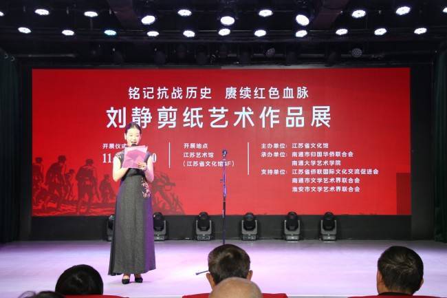 江南时报讯 当剪刀划破红纸,烽火岁月的轮廓在指尖苏醒;当纸屑簌簌落下,红色血脉的温度在方寸间流转。11月2日下午,“铭记抗战历史 赓续红色血脉——刘静剪纸艺术作品展”在江苏文化馆正式启幕,文化界、艺术界、侨界同仁齐聚现场,共赴这场“纸载红色记忆”的艺术之约。