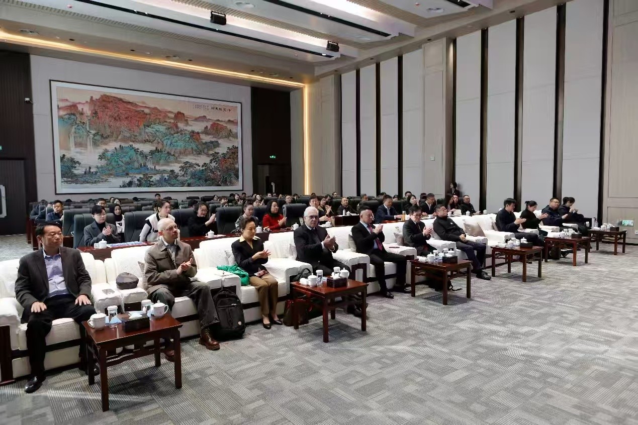 与会专家学者与海外华文媒体代表,围绕儒学的历史发展、当代价值、研究现状、国际传播及媒体融合等议题进行了访谈交流。研讨内容广泛而深入,不仅追本溯源,重探“仁者爱人”“中庸之道”“和合共生”等经典命题的当代价值,更以比较哲学与全球伦理的视野,阐发儒学智慧在应对现代性挑战、推动多元文明共存中的独特贡献。既有儒学对当代青年人格塑造的价值与影响探讨,也有对孟子“心性之学”与西方德性伦理的对话交锋;既包含对儒家经典文本的现代阐释,也探索其在全球语境下的传播路径。整场研讨兼具理论深度与实践视野,思想火花不断迸发,充分展现了儒学在跨文化语境中的丰富内涵与当代活力。互动环节中,现场听众向专家学者、海外华文媒体代表进行了提问,进一步促进了不同学术背景与文化视角的思想交融,生动诠释了“和而不同”“兼容并蓄”的儒学智慧,现场学术氛围浓厚热烈。