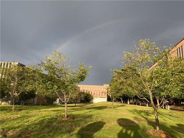 (圖)從太平洋彼岸遠渡而來,剛進韶關大學就偶遇了彩虹的歡迎