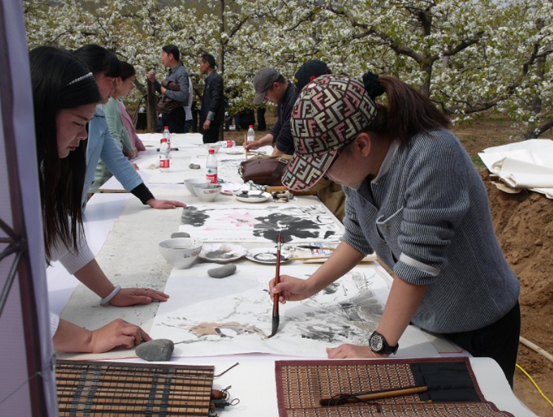 启动仪式期间,河南民盟书画院艺术家在马店镇采风并在梨园现场开展笔会。各路媒体记者、摄影家和书画艺术家们用各自方式展示梨园春色,宣传洛宁,宣传洛阳,宣传河南。(常艳)