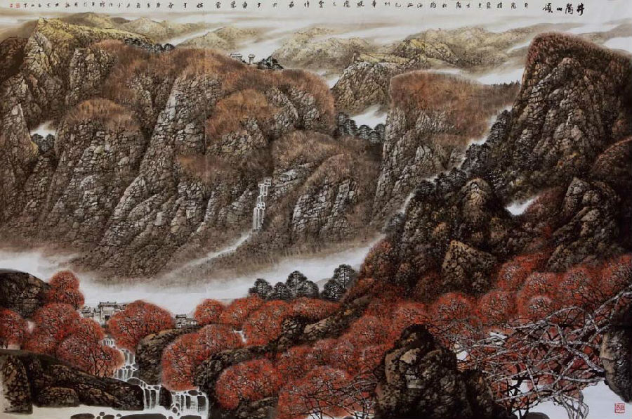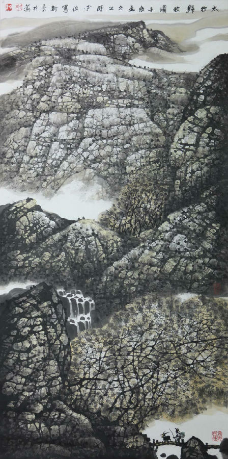 楊必位的藝術理念大緻基于這種思考,楊必位的山水畫創作走向,幾乎都循着從曆史文化的傳承走向現代語境的創新。在中國畫創作中,當前出現了多元而又散亂的局面,可謂“群雄并起”。然而,很多弄潮兒在藝術的探索中改變了中國畫的基因,改變了中國文化獨特的語彙系統,甚而改變了畫種的基本界線。楊必位在這方面卻非常冷靜、非常理智,他的齋号取爲“啞樓”可謂用心良苦,他要求自己“橫站”在“中西之間、古今之間”(吳冠中語)。在他的山水畫創作的探求中,做到與生活相應、與時代合拍、與自然共鳴。中國文化傳統中優秀的東西,他始終堅而持之,又将中國文化的内蘊與現代理念有機結合,強調文化、強調人格、強調精神,他一改過去丘陵田園小橋流水的甜潤風格,代之以巨制宏幅的峻山雄川,取正、取大、取實、取密、取雄強、取磅礴,從而讓自己的作品展現出一種全新的正大氣象。楊必位是一個人格特征極爲鮮明的學者型畫家,他在“啞樓”中一默如雷,筆傾千秋煙波、胸懷萬裏風雲。畫自然,更畫學問。他在《論社會多元發展對中國山水畫藝術生存力的影響》一文中說:“中國山水畫早在一千多年前就逐漸形成了獨立完整的畫種體系,南朝時由宗炳撰《畫山水序》,王微撰《叙畫》,謝赫著《古畫品錄》等一批論著的出現不但規範了山水畫的藝術品性,也爲山水畫的成功發展獲得了理論建樹。姚最的《續畫品錄》中的“咫尺之内,而瞻萬裏之遙,方寸之中,乃辨千尋之峻”已成爲曆代畫家闡釋中國山水畫精義要妙的重要依據。中國山水畫在悠長的藝術實踐過程中,綜合了孔子的仁學道德觀和莊子的虛靜道德思想,形成了“藝術爲人生修養之資,并作爲人格完成的境界”,把修養人生、享受人生作爲人生藝術追求的理想,并自覺地形成了具有中國特色的藝術精神的形式突變。中國畫那玄遠淡泊、天人合一的審美精神和哲學理念,從表象化的賦形美到内蘊式的詩性美,充盈着的濃郁的東方情韻,讓一代代的畫家癡迷地浸淫在對山水畫的不斷實踐與探索之中,并将山水畫的精神品性發展到“重境界”、“重格調”、“重品質”、“重人格表現”的崇高境地,并以唯美的藝術表達方式表達出中國的文化精神而爲中國文人世代相襲,鍾愛非凡的心理所依重,它直接影響了曆代畫家多樣化風格的創作實踐和深厚的理論探讨,推動着中國山水畫創作的不斷發展而至今未能消減。”楊必位又說:“部分畫家因受地域文化的局限而缺乏向外部世界及其他藝術門類學習借鑒的條件,視覺經驗未能得到充分的拓展,畫家的胸襟及創作思路未能産生質的超越,而過多地回味筆墨的精妙性則成爲制約畫家個性化創造力發揮的包袱。由于未能從前人所創造的語境中走出來,又缺少與現代相锲合的藝術表達語彙,緻使中國山水畫少了幾分與世界藝術相交、相聚的機會。”楊必位的論述缜密而又深度。由此觀之,楊必位走的是繼承創新、多元創新、開放創新的創作思路。他希望自己能在沉寂執著的藝術耕耘中去尋找一種更新的藝術語言來表達自己的内心的真誠感受,來發掘中國繪畫更強大的内在力量和外延能力。并孜孜不倦地追求着最能表達他那與時共進的情懷和心中的象外之象。
