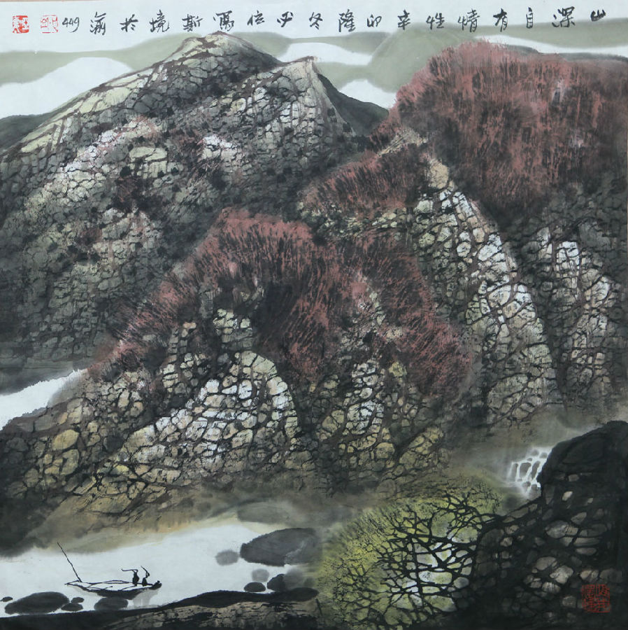 石濤的“一畫論”說:藝術形象要經過“心爐鑄造”,畫家從下筆之始到收筆結束,應由心境主宰畫境。宗炳在《畫山水序》中又說:“聖人以神發道,而賢者通;山水以形媚道,而仁者樂。”同西方繪畫相比較,中國畫的語境是非常獨特的,它既超越了客觀,也超越了科學,始終以意象構成的方式來表現客觀事物,又通過對自然的描繪來求得氣韻的美學追求。中國畫的宏觀定位是天人合一,形神合一的哲學思辨與似與不似,一以貫之的表現方法的完美結合,這正是中國畫傳統的絕妙之處。《中庸》有一段話說得更爲明白:“天地之道,博也、厚也、高也、明也、悠也、久也。”謝赫六法中,将氣韻生動列爲各法之首,不僅僅是簡單的排序,其它五法都應貫穿“氣韻”的始終。所以,曆代山水畫家在創作中,都刻意對心靈意象和自然本體的對應進行了“神與物遊”的描繪和抒發,充分體現了曆代中國山水畫家深厚的文化傳承中的哲學内涵。這也正是禅宗的心造萬物的旨歸。中唐之後,禅道合流,“釋迦其表,老莊其實”。禅對人生及宇宙的直覺體驗,頓悟其中玄機奧妙,比道家更勝一籌。儒釋道的融會貫通讓畫家步入了更爲自由的無限思維空間。在中國山水畫中,兩度空間,散點透視,以及線的運用充分體現了以形媚道,天人合一的兩個特征,似與不似之創作方法将自然之美和人格之美結合起來,這種博大精深的文化精髓正是我們踏進藝術之門的根本大法,中國畫模式的形成,正是精益求精、千錘百煉的結果,然而,中國畫的程式并不是一成不變的,中國畫的精絕是在不斷完善、不斷豐富、不斷發展中,在每一個時代找到相對應的文化特征和表現方法,去體現時代的人文精神。曆代的中國畫大師在藝術中的真誠而執着的追求,不斷突破、不斷創新,産生了一個又一個高峰,早已證明了這一點。所以,創新仍然必須遵循曆史文化的脈絡才能求得大的發展。