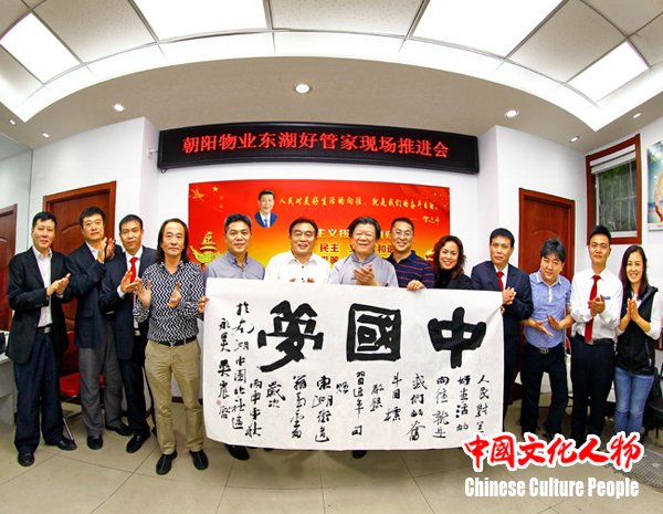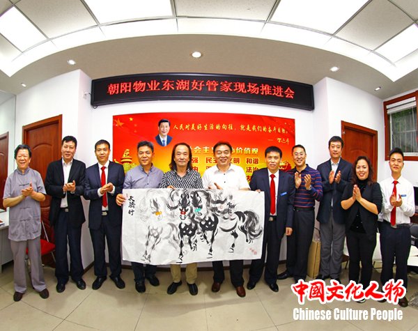 民惟邦本,本固邦宁。习近平总书记曾说:“人民对美好生活的向往,就是我们的奋斗目标。”民生是人民幸福之基、社会和谐之本。民生连着民心、民心凝聚民力,做好保障和改善民生工作,事关群众福祉和社会和谐稳定。9月26日,由北京市朝阳区人民政府东湖街道办事处主办的“朝阳物业东湖好管家工作推介会”在南湖中园社区举行。中国书法家协会理事、著名诗人书法家吴震启,中国美术家协会理事、宁夏美术家协会副主席、国家一级美术师郭震乾,北京市朝阳区人民政府东湖街道办事处工委书记商建英、主任徐继锋,北京市住建委物业指导中心副主任付平等领导及艺术家出席。通过实地考察和座谈会的形式,共同探讨社区治理的新模式,参加会议的领导、专家以及中国著名艺术家一致认为,“朝阳物业东湖好管家”以人民为中心的定位,与习近平总书记“人民群众对美好生活的向往,就是我们的奋斗目标”的出发点与落脚点在逻辑上高度一致,也是对这一执政理念的生动落实。