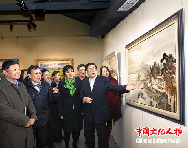 中国美协分党组书记、驻会副主席兼秘书长徐里与著名经济学家、中国经济改革基金会理事长宋晓梧,著名经济学家、中国市场协会副会长李晓西等专家学者及艺术家参观展览并进行跨界交流