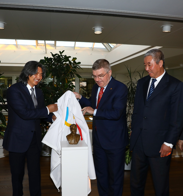应国际奥委会主席托马斯·巴赫之邀请,中国美术馆馆长、中国美术家协会副主席、著名雕塑家吴为山为现代奥林匹克运动创始人顾拜旦塑像。当地时间2017年1月16日16时半,吴为山向国际奥委会总部捐赠他创作的顾拜旦雕像,国际奥委会主席托马斯·巴赫,国际奥委会副主席于再清等出席捐赠仪式