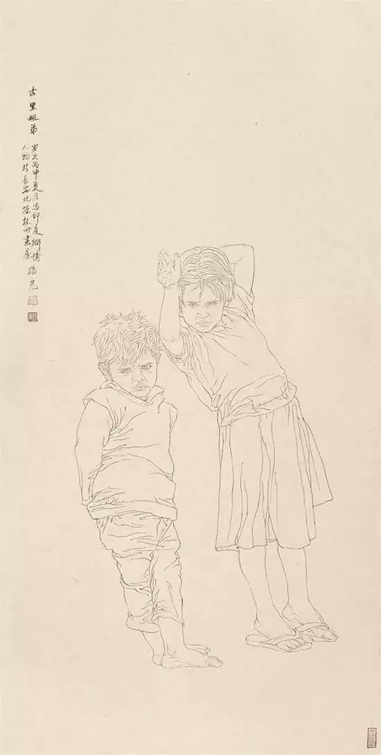 就是这样一位坚定而颇有实绩,风格稳定的画家,近年却做了一个让人吃惊的转身。他放弃了自己轻车熟路的人物写实画风,用纯粹的中国画传统白描手法画了一批印度人物,这对一个艺术家来说是他创作冲动和内在动力的需要,显然是艺术的一种自觉行为。