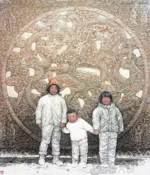 当作品最终在中国美术馆展览时,却收到了意想不到的效果。在众多浓墨重彩的大幅作品中,这幅作品远看就像一张白纸,而近看却密密匝匝,心象万千。这种不以视觉冲击力为主的作品,反而以一身素衣实现了作品由弱变强的转化,非常富有艺术感染力。