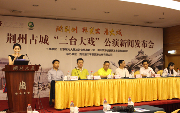 新闻发布会现场国内旅游演艺再添重磅剧目中国荆州古城三台大戏本月首演 有一座城市,一部120回的《三国演义》就有72回提到她——荆州。11日上午,荆州旅