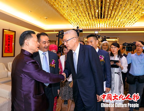 弘扬中华文化《黄帝内经》台湾行——吴敦义会见《黄帝内经》文化促进会会长王寅吴敦义在台北101大楼与《黄帝内经》文化促进会会长王寅亲切握手交流中新社发王保胜