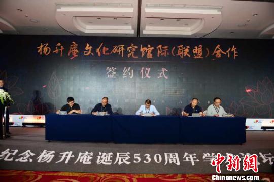 图为签约仪式现场。 何亚东 摄中新网成都9月13日电(岳依桐)《杨升庵文化馆际合作(联盟)协议》(以下简称《协议》)13日在成都市新都区正式签署,旨在通过各学术机