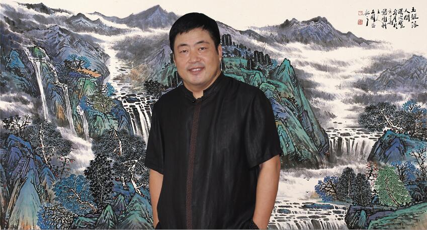 大境无极评王立国的青绿山水画王阔海/文王立国的青绿山水,有一种“大气象”。其风格是重彩写意一路,大气、沉雄、恬静,既以气势为胜,又兼得神韵。不仅给人以强烈的