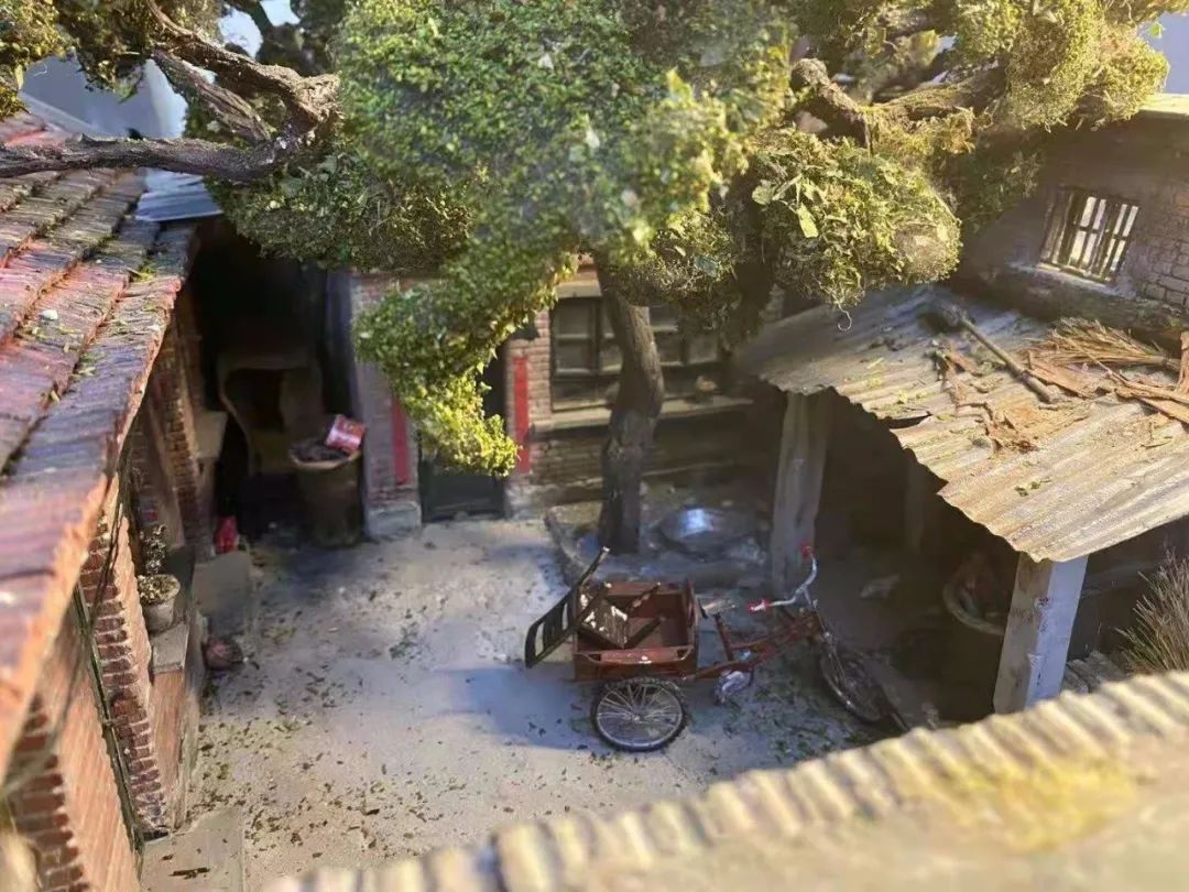 图为模型还原的老庭院。褪色的红砖墙、斑驳的院子门旧窗户、咸菜缸、电线杆……近日,中国河北保定一名90后小伙用模型还原奶奶家的老庭院,勾起很多网民的童年回忆