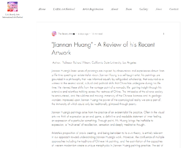 《“黄建南”——近期作品回顾》引发关注△《“黄建南”——近期作品回顾》截图近日,世界著名艺术评论家理查德·韦恩(RichardWeam)在比佛利艺术网发表了一篇题为《