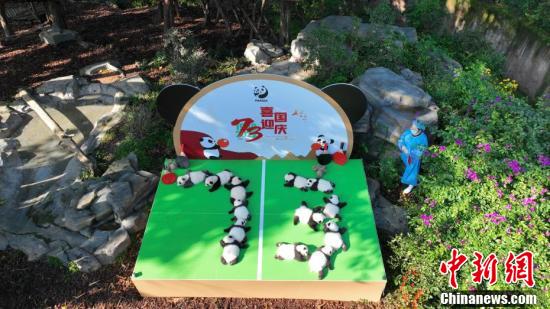 9月28日为庆祝新中国成立73周年以及预祝成都世乒赛举办成功,此次新生大熊猫集体亮相活动融合了国庆以及乒乓球元素。在乒乓球桌样式的亮相台上,饲养员将大熊猫幼仔