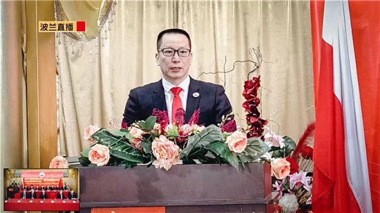 波兰华侨华人协会会长赵德金在致辞中表示,作为第六届波兰华侨华人协会的会长,感到自己肩上的责任重大,他将切实履行会长职责,继续本着服务侨胞、耕耘奉献,推动波兰华侨华人协会紧跟新时代,开创新局面,再上新台阶,展现新作为。赵德金指出,协会的创会宗旨是 “团结华人,促进融合,增进友谊,宣扬中华文化”。当今的世界面临百年未有之大变局,中国作为具有国际影响力的大国面临着巨大的机遇和挑战。作为身在海外的华侨华人应当以爱国爱乡为己任。2021年,恰逢“两个一百年”奋斗目标历史交汇之时。特殊时刻的两会,习近平主席连续强调“高质量发展”,意义重大。从两会精神中我们海外华侨看到了大国当担,中国发展离不开世界,世界发展了也需要中国,两会让我们心中升起澎湃的爱国热情和社会责任感,我们海外华侨华人进而要提升自己的能力,为祖国现代化建设储备资本。