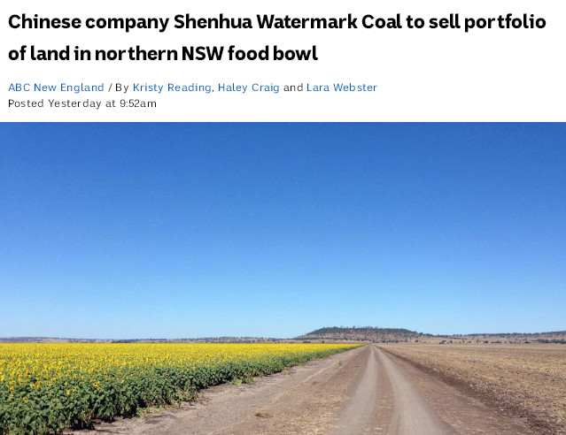 中国神华集团(Shenhua)近日将出售位于新州北部的165.7平方千米的土地,预计总价值将超过1.2亿澳元。