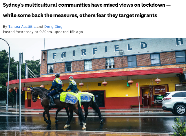 一些人支持封城,另外一些人对一些措施表达了失望。这些措施被认为是针对悉尼西部和西南部的弱势社区。