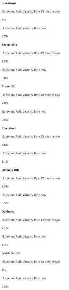 另外,他们的数据还显示,悉尼西区进入低房租top 20的城区,房屋空置率同比都大幅降低,包括以下城区: