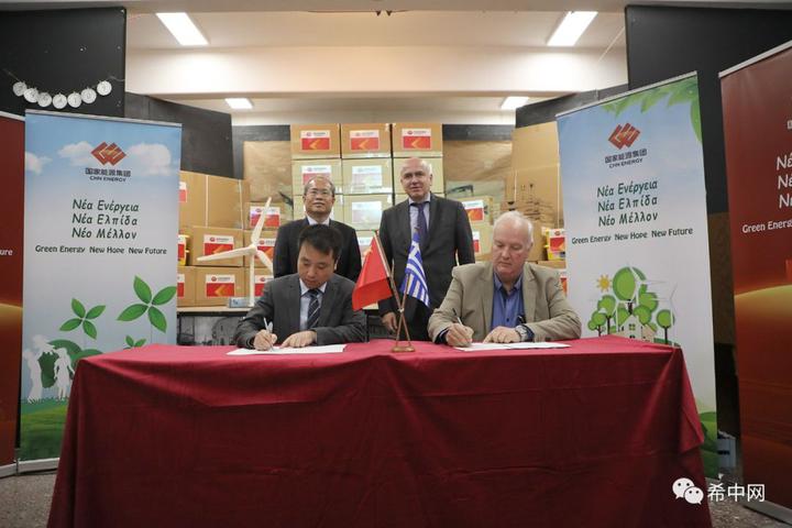 图为欧洲新能源公司总经理李早与校长马力诺思·康斯坦丁尼迪斯签署《捐赠协议书》