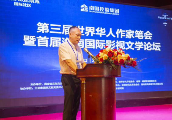 大会主席、世界华人周刊社长张辉代表南海出版公司高教出版中心向来宾介绍了即将结集出版《海外作家看海南》的约稿事项。