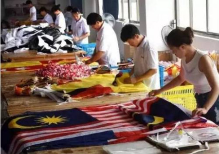 看到这些国旗了吗?在令人振奋的颁奖环节中,各国升起的国旗都出自于中国工人之手,此外还有头巾、帽子、围巾、荧光棒等衍生产品。