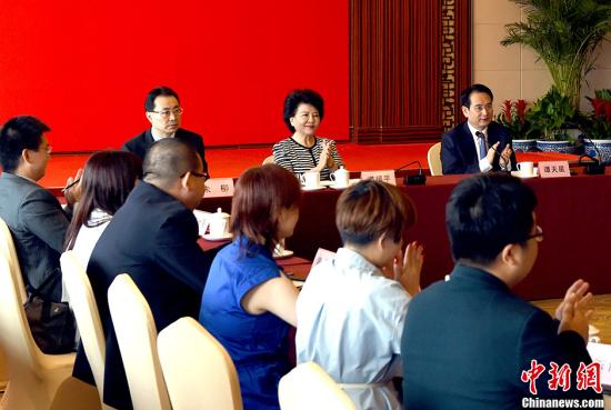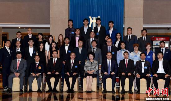 8月10日,中国国务院侨办主任裘援平、副主任谭天星在北京与在港华人青年专业人士访问团举行座谈。中新社记者 张勤 摄