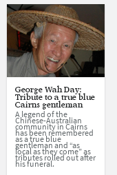 91岁的凯恩斯华裔社区传奇人物乔治(GeorgeWahDay)于6月28日去世,参加完葬礼的人近日悼念他。,Leichhardt地区议员昂西(WarrenEntsch)表示,他和乔治相识了数年,视他