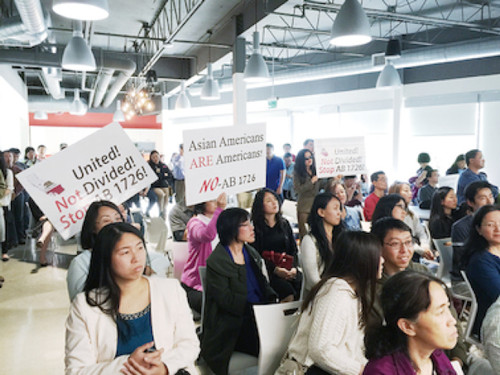 硅谷华裔小区民众举牌抗议。(美国《世界日报》/王金城摄)据美国《世界日报》报道,日前,提出AB1726法案的美国加州众议员彭达(RobBonta)在代表硅谷地区州众议员朱感