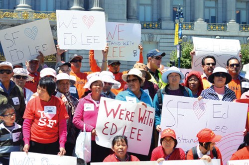 反对罢免者在旧金山市政大楼前集会。(美国《世界日报》/李秀兰摄)中国侨网7月21日电据美国《世界日报》报道,“反对罢免浪费公款联盟”当地时间19日在美国旧金山市