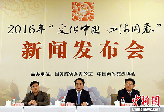 图为发布会现场中国侨网北京1月20日电(记者杨凯淇)“2016‘四海同春’不只为海外华侨华人送去精彩演出,也将邀请侨胞参与其中,一起‘过大年’。”国务院侨办副主任