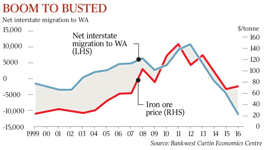 据《澳洲人报》报道,西澳曾经的矿业繁荣曾吸引数以千计的人才落户柏斯,如今,这批人已开始逐渐东移,铁矿石价格上涨与人口西迁的正相关联系被割裂。西澳银行科廷经