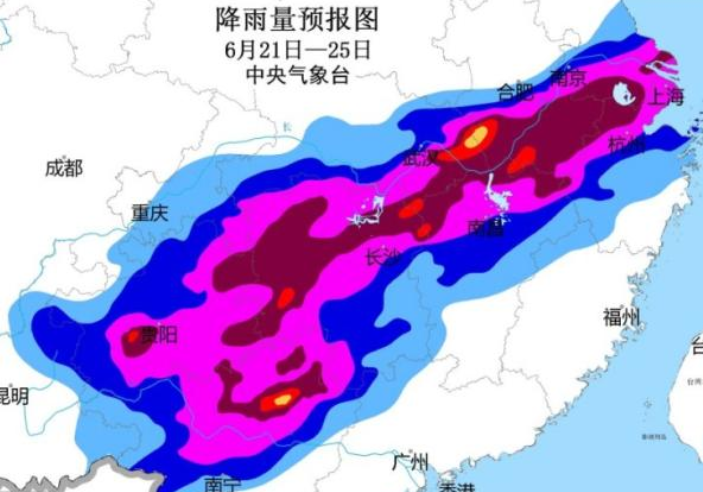 中新网6月21日电据中央气象台网站消息,最新预报显示,21日至25日贵州至长江中下游一带将遇入汛以来的最强降雨过程,此轮强降雨过程的持续时间长、影