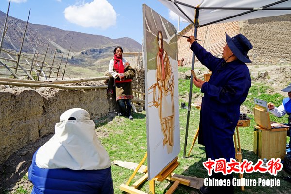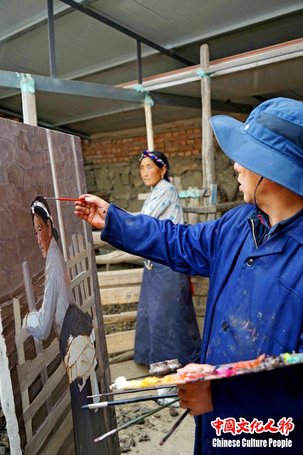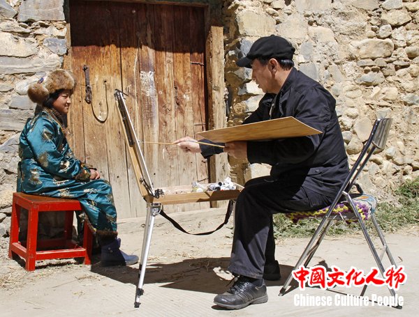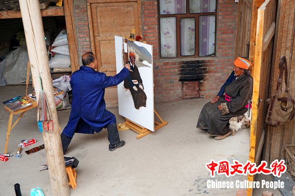 韩玉臣给藏民画像