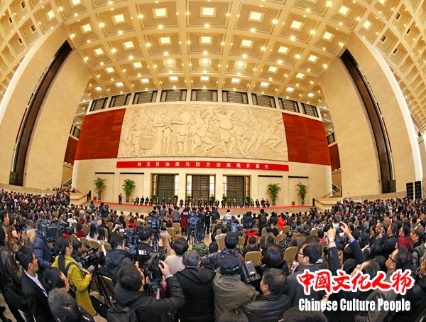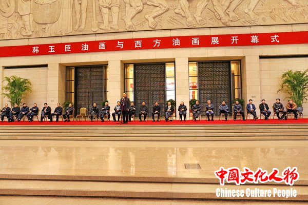 中国国家博物馆高朋满座,气氛热烈,来自海内外文化艺术界的领导、专家学者,以及工商界的嘉宾近两千人出席“韩玉臣油画与西方油画展”开幕式