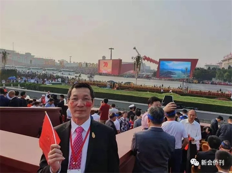 邝锦荣表示:这次70周年国庆是我第三次受邀参加阅兵观礼活动,之前,我还参加了60周年国庆和9.3阅兵。每当我走进这样火红、热情而又庄严的场景中,我都会不由自主地被周围的一切感染、感动。特别是当习近平总书记在天安门城楼上充满信心和力量地说“没有什么力量能阻挡中国前进的步伐,中国的明天必将更加美好”时,大家都不约而同地激动鼓掌。七十年来,中国发生了翻天覆地的变化,经历了从“站起来、富起来、强起来”的艰辛而伟大的历程。作为旅居海外多年的游子,能够亲眼见证祖国的富强变化我感到非常骄傲和自豪。我们海外侨胞也将继续不忘初心,牢记使命,砥砺前行,为中华民族的伟大复兴贡献力量。我衷心的祝愿祖国这条腾飞的巨龙,永远屹立在世界的东方!祝福中国繁荣富强、全国各族人民幸福安康!